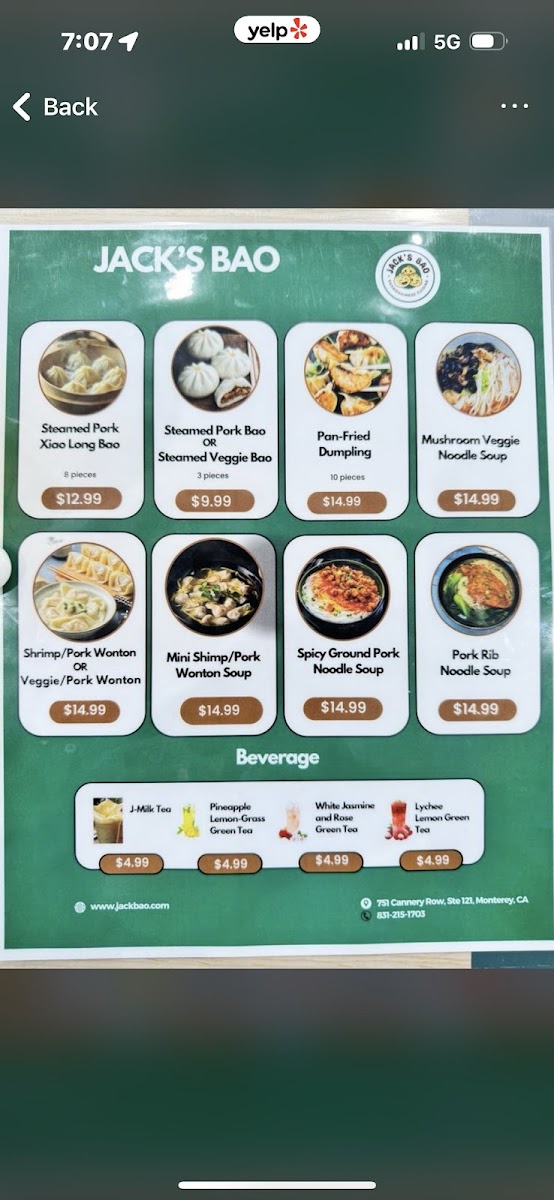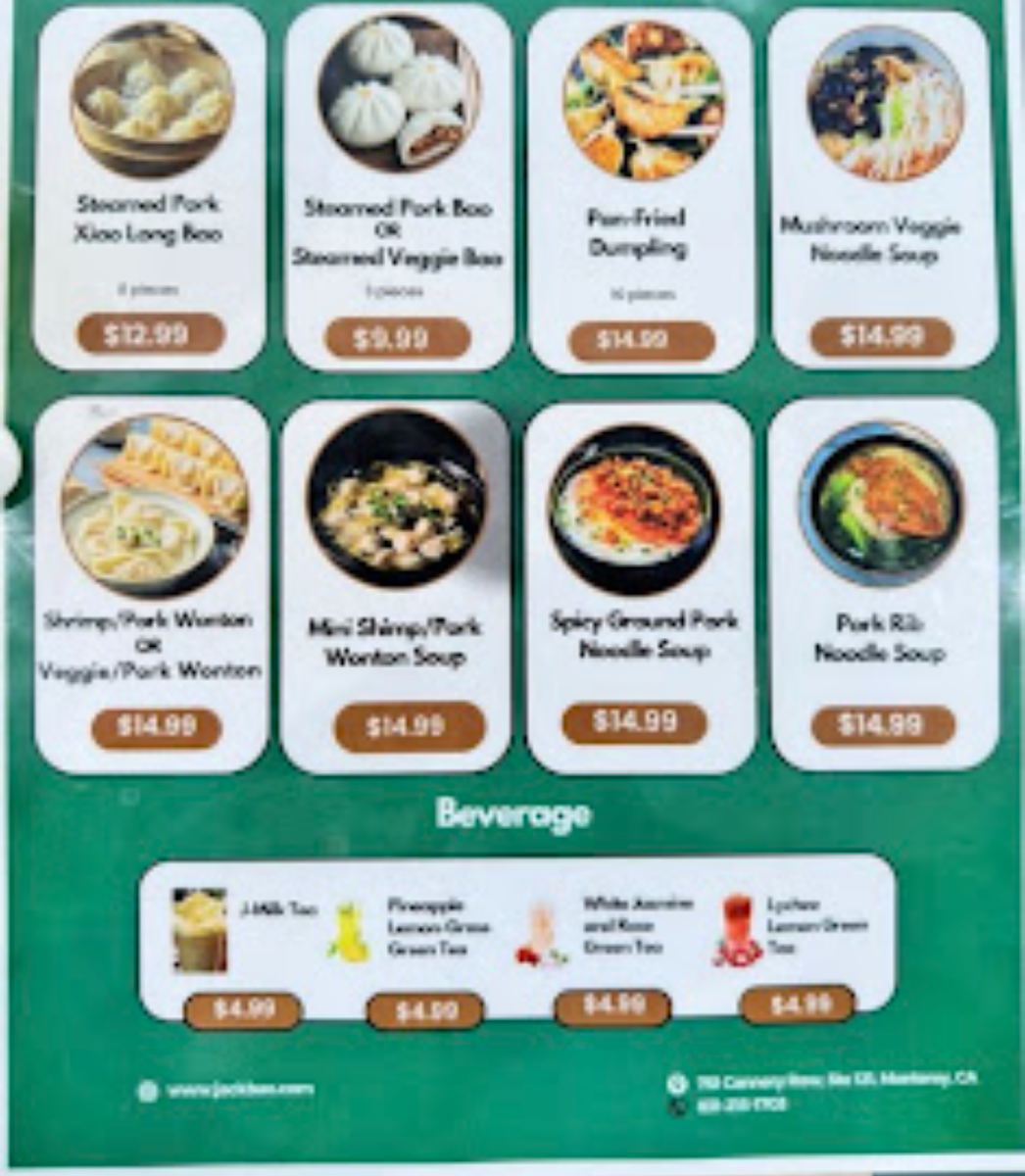 From the moment you sit down at Jack’s Bao, the menu reads like a love letter to bold, comforting flavors. The heart of the offerings lies in the noodles, with the rich and warming Spicy Ground Pork Noodle Soup and the deeply savory Braised Beef Noodle Soup. For dumpling lovers, the Mini Shrimp And Pork Wonton SOUP and the tender Sticky Rice And Mushroom ShaoMai offer textural variety and satisfying bites. The bao selection is a true highlight - from the classic Steamed Pork Xiao Long Bao (XLB) and juicy Steamed Pork Bao to the fresh Steamed Veggie Bao and sweet treats like the Sweet Red Bean Bao and creamy Egg Custard Bao. Complementing these are essential condiments such as Soy Sauce, fiery Chili Sauce, and tangy Spiced VinegarRice Vinegar to tailor each bite. To wash it all down, the inventive Coco-Pina Refresher, aromatic Pineapple Lemon-Grass Green Tea, floral Lychee Lemon-Rose Green TeaWhite Jasmine And Rose Green Tea, and classic J-Milk Tea round out a menu that’s both playful and deeply satisfying.